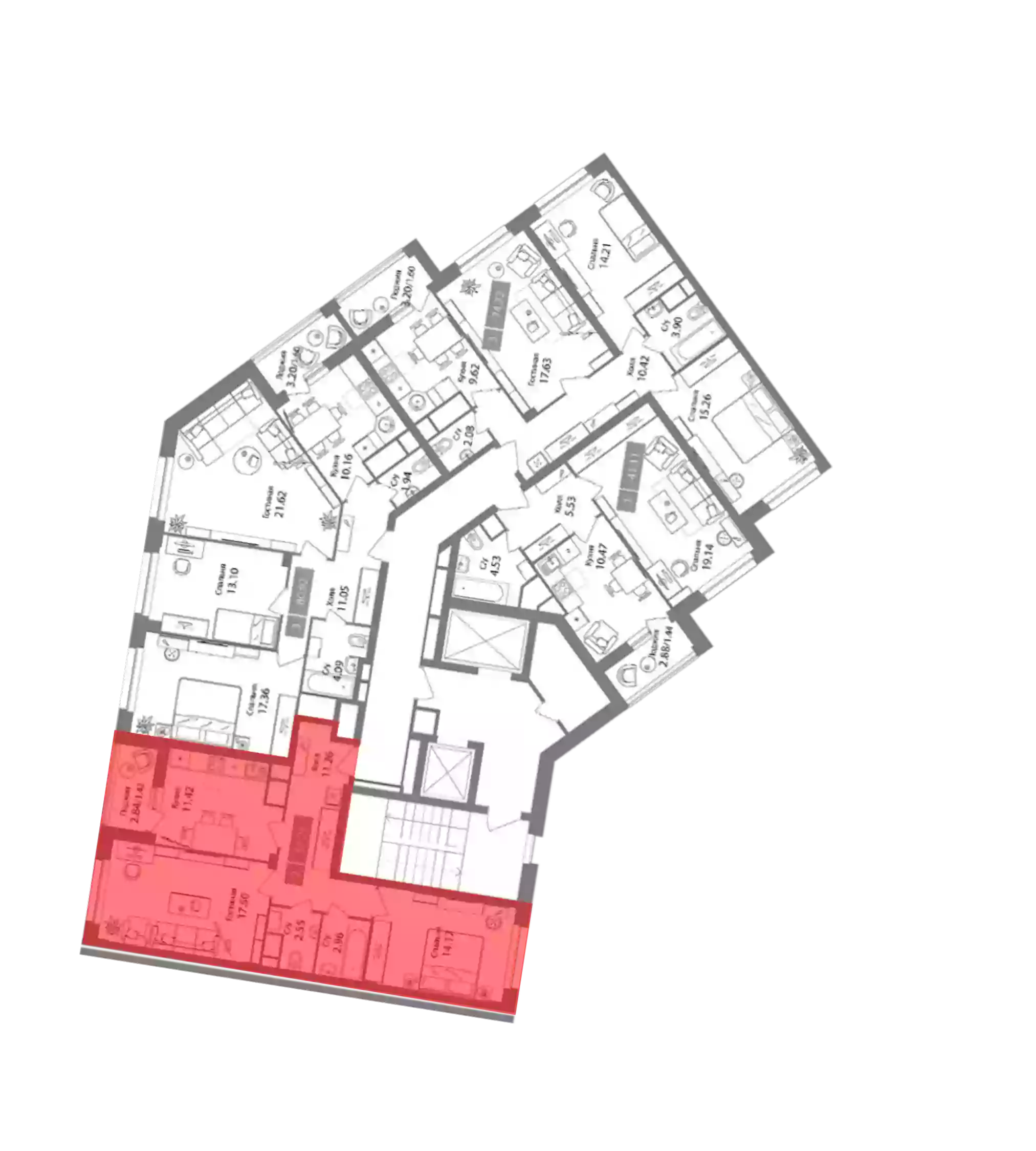 - Этажей в доме 17