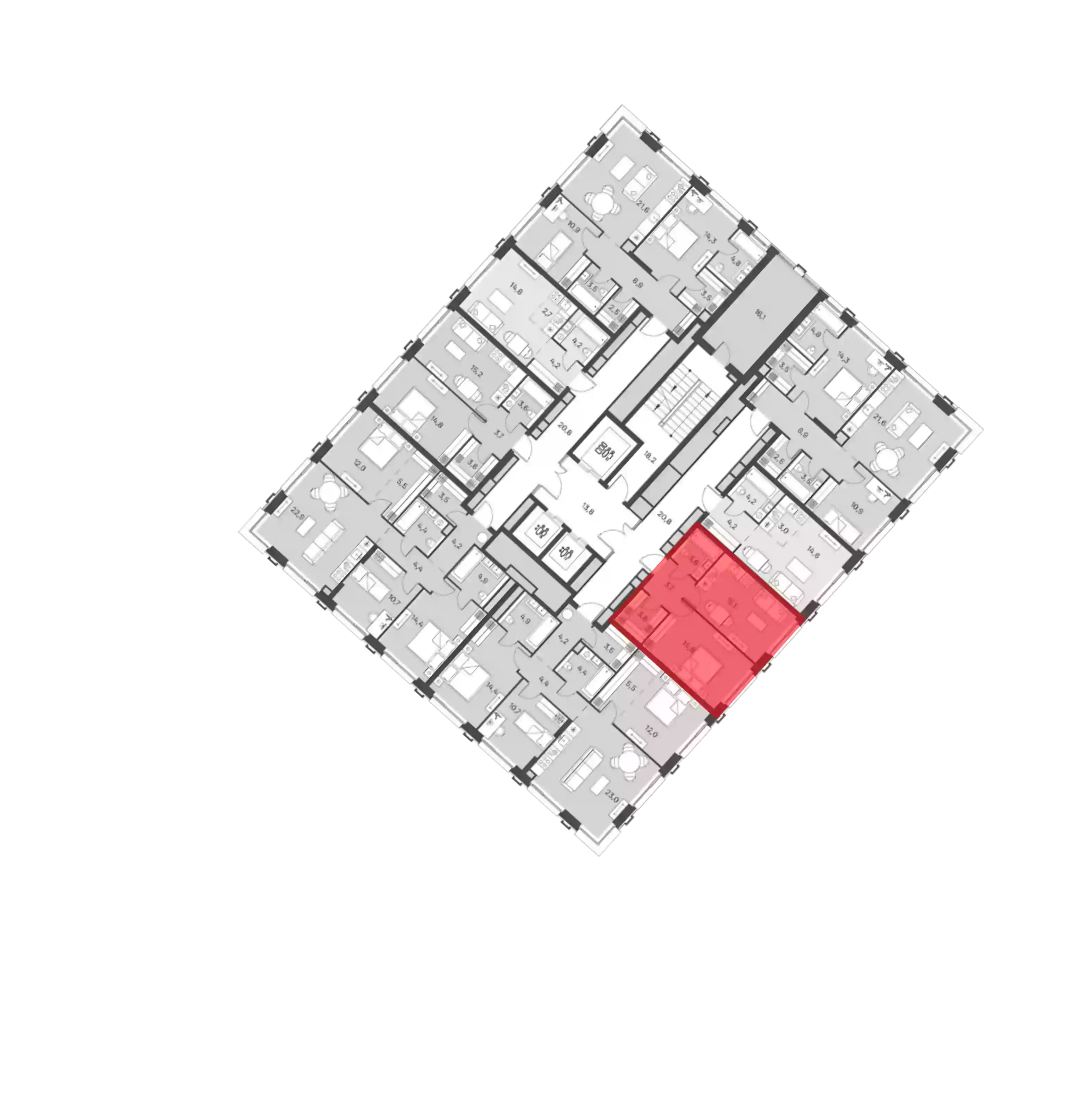 - Этажей в доме 21