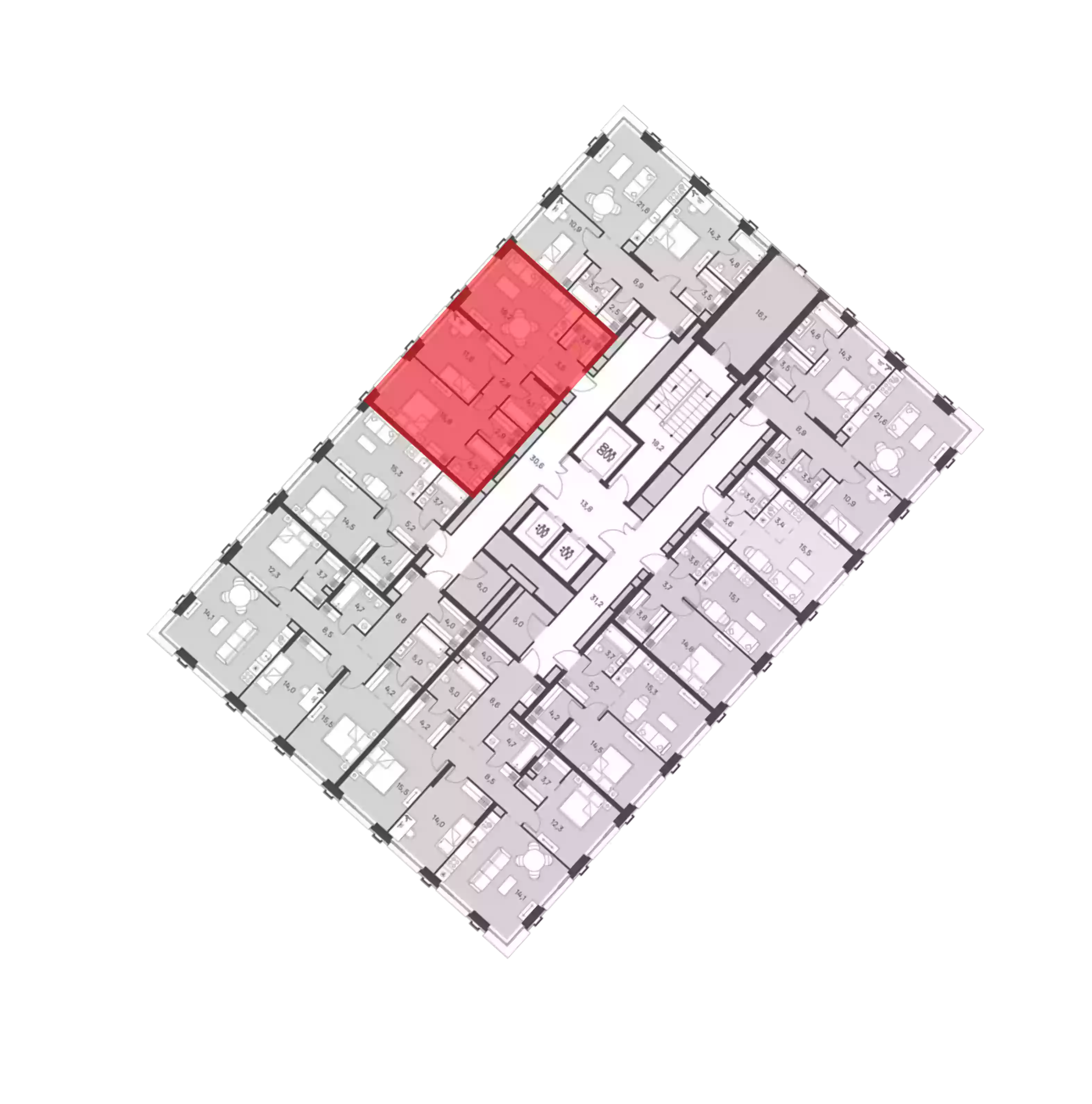 - Этажей в доме 21