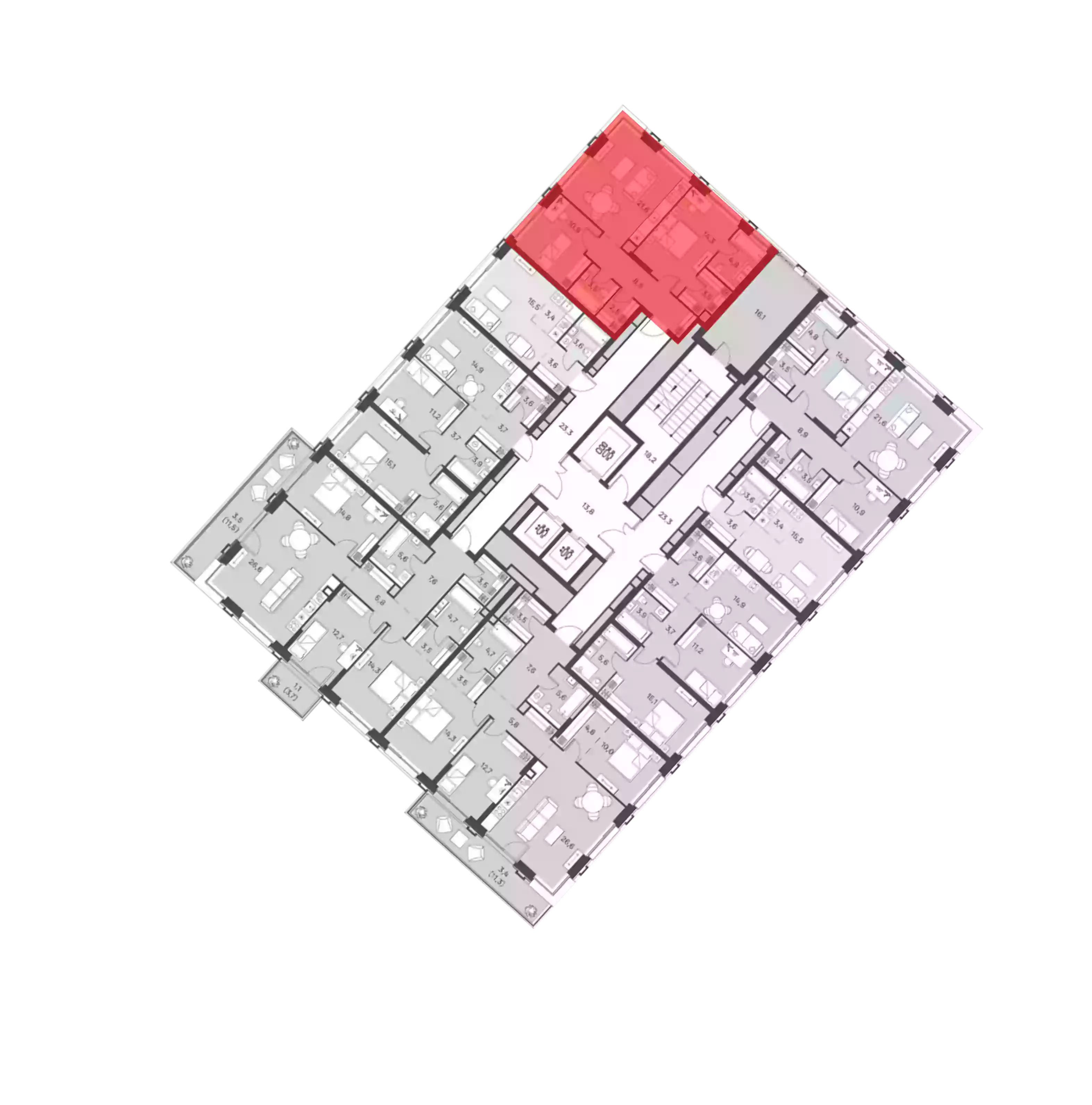 - Этажей в доме 21