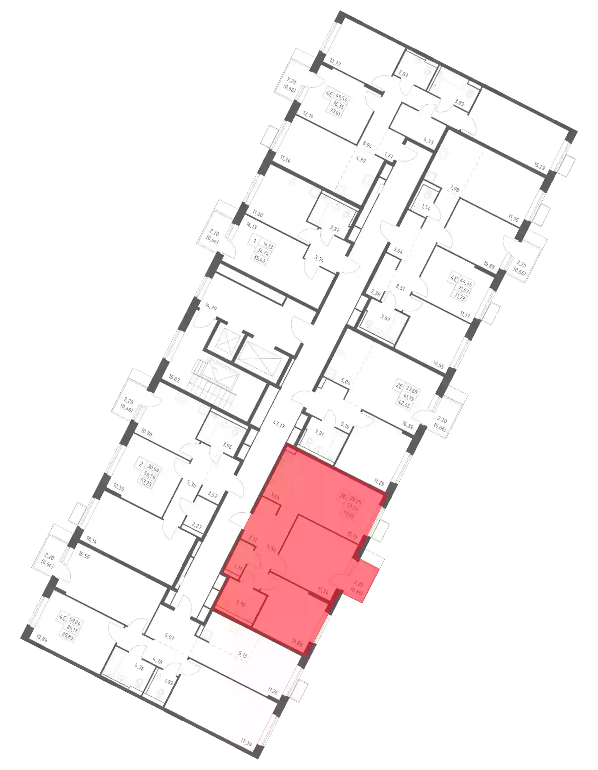 - Общая площадь 57.27 м²