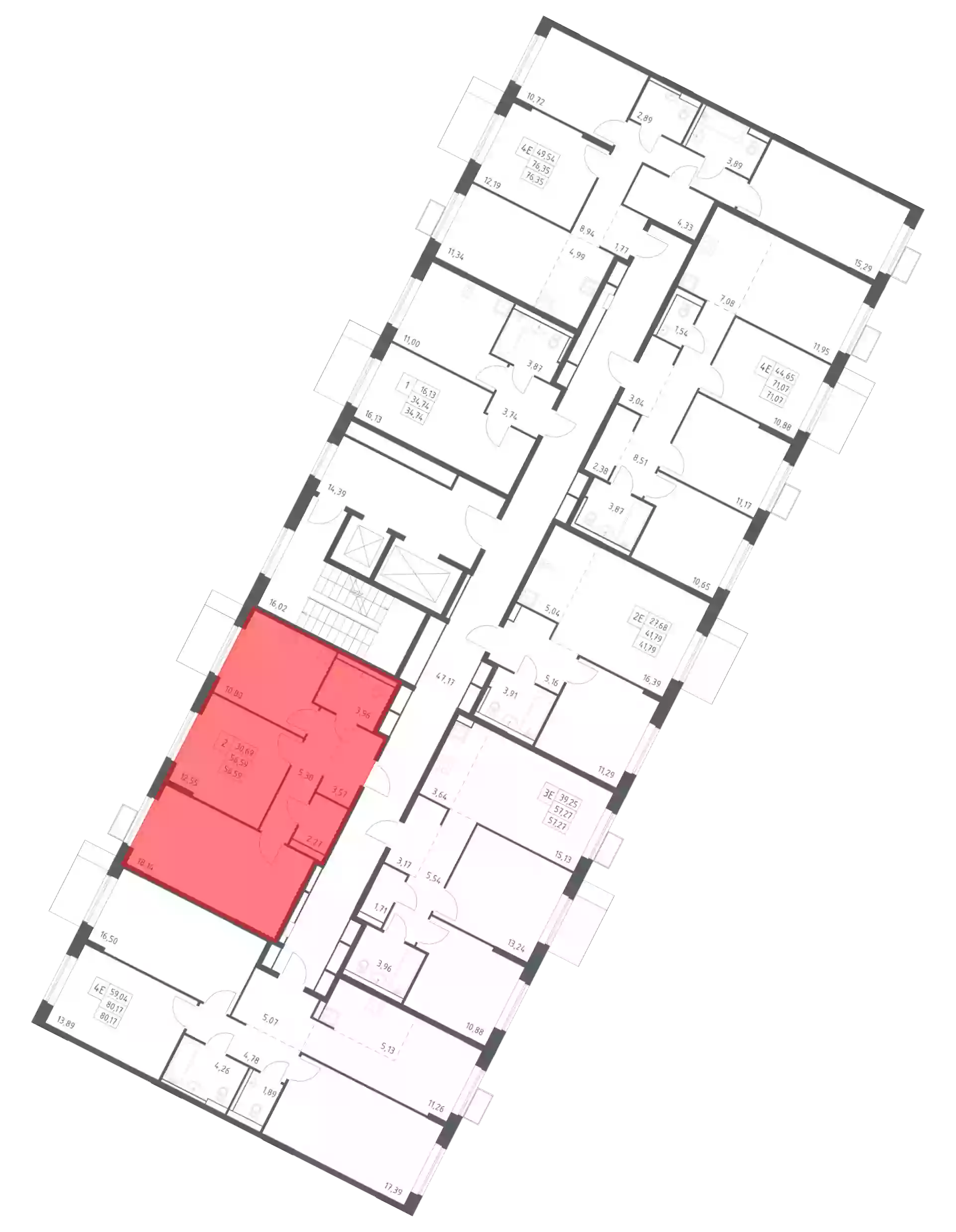 - Общая площадь 56.59 м²