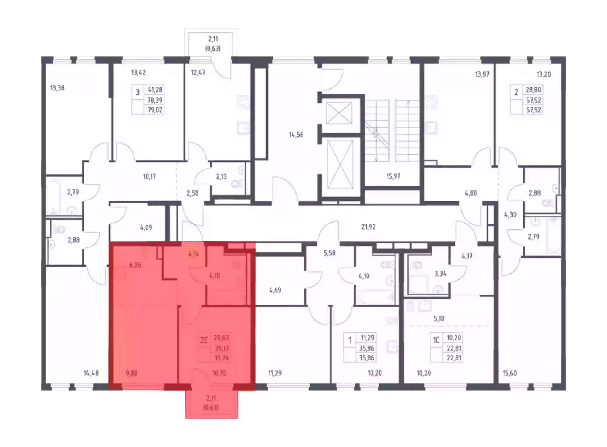 - Общая площадь 35.13 м²