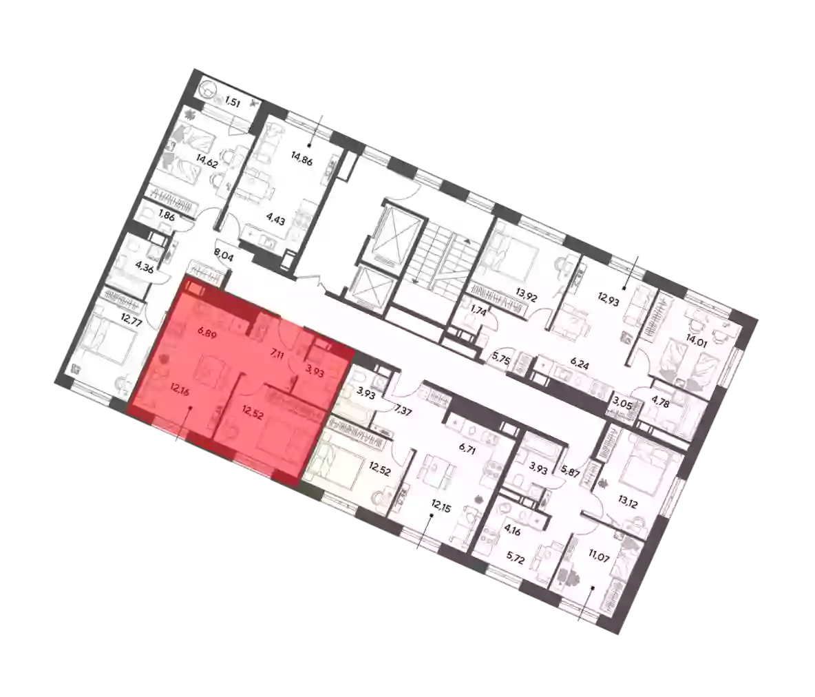 - Жилая площадь 12.52 м²