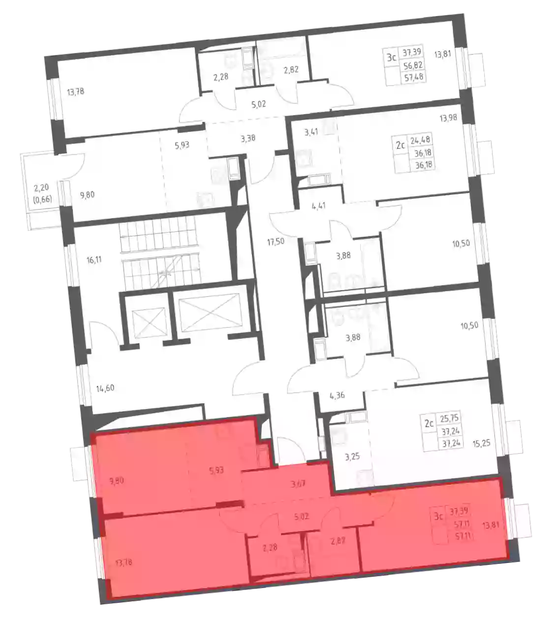 - Общая площадь 57.11 м²