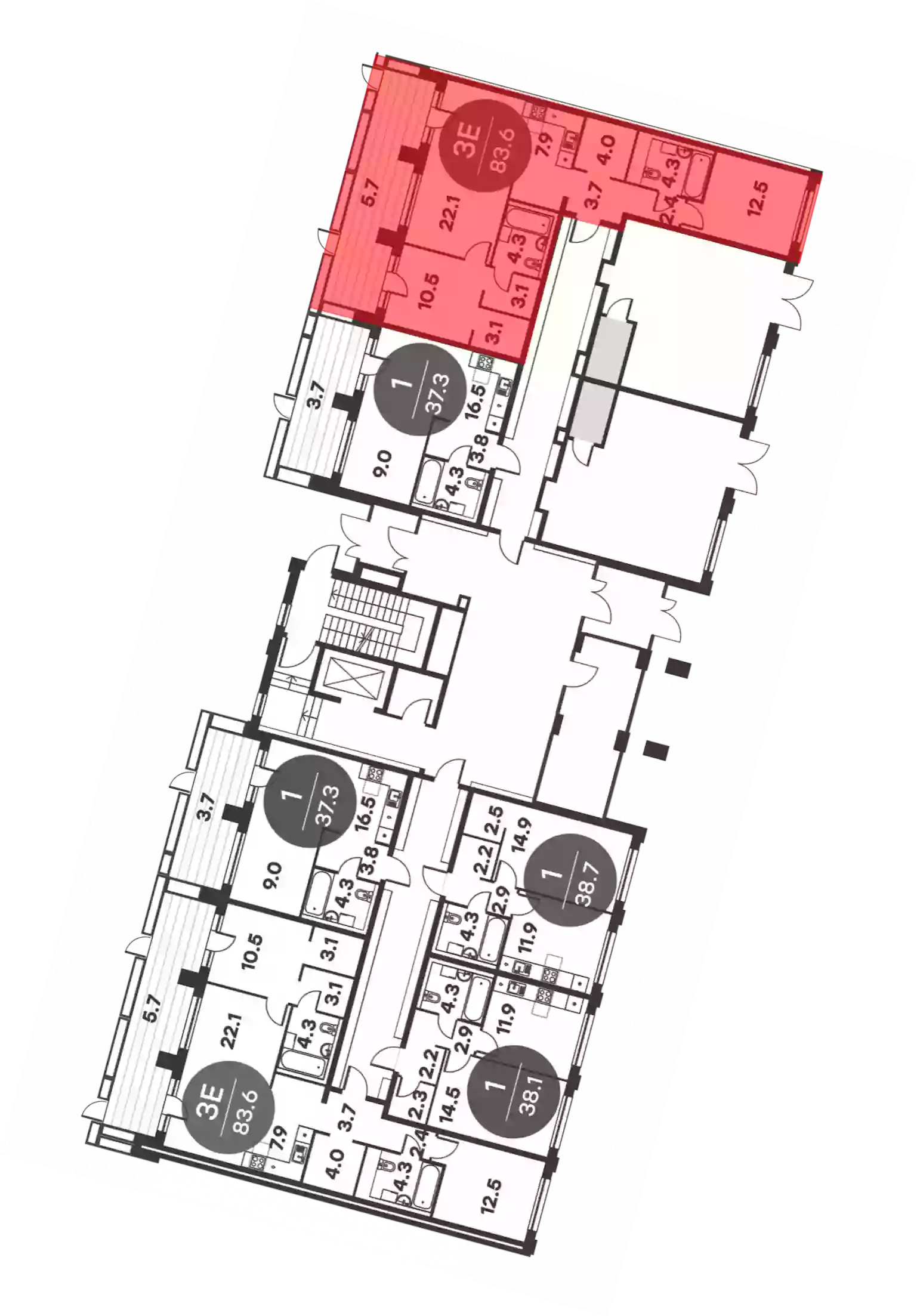 - Общая площадь 83.6 м²