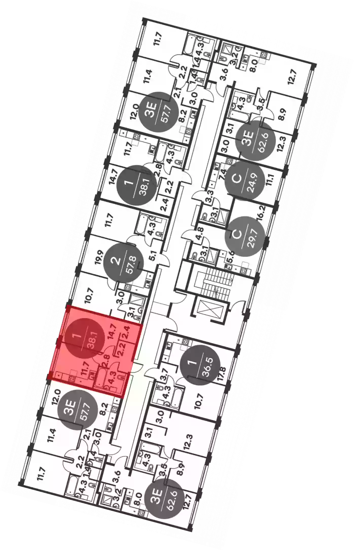 - Общая площадь 38.1 м²