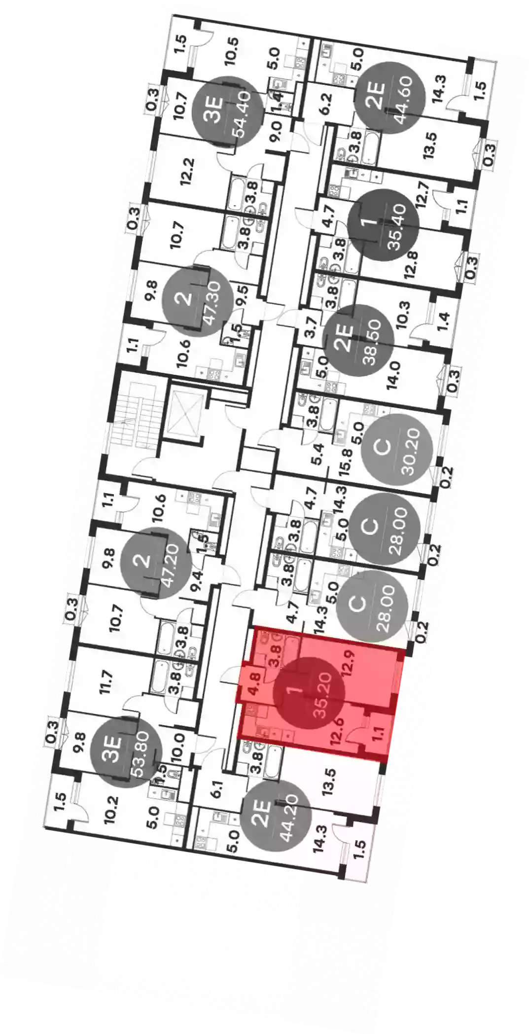 - Жилая площадь 12.9 м²