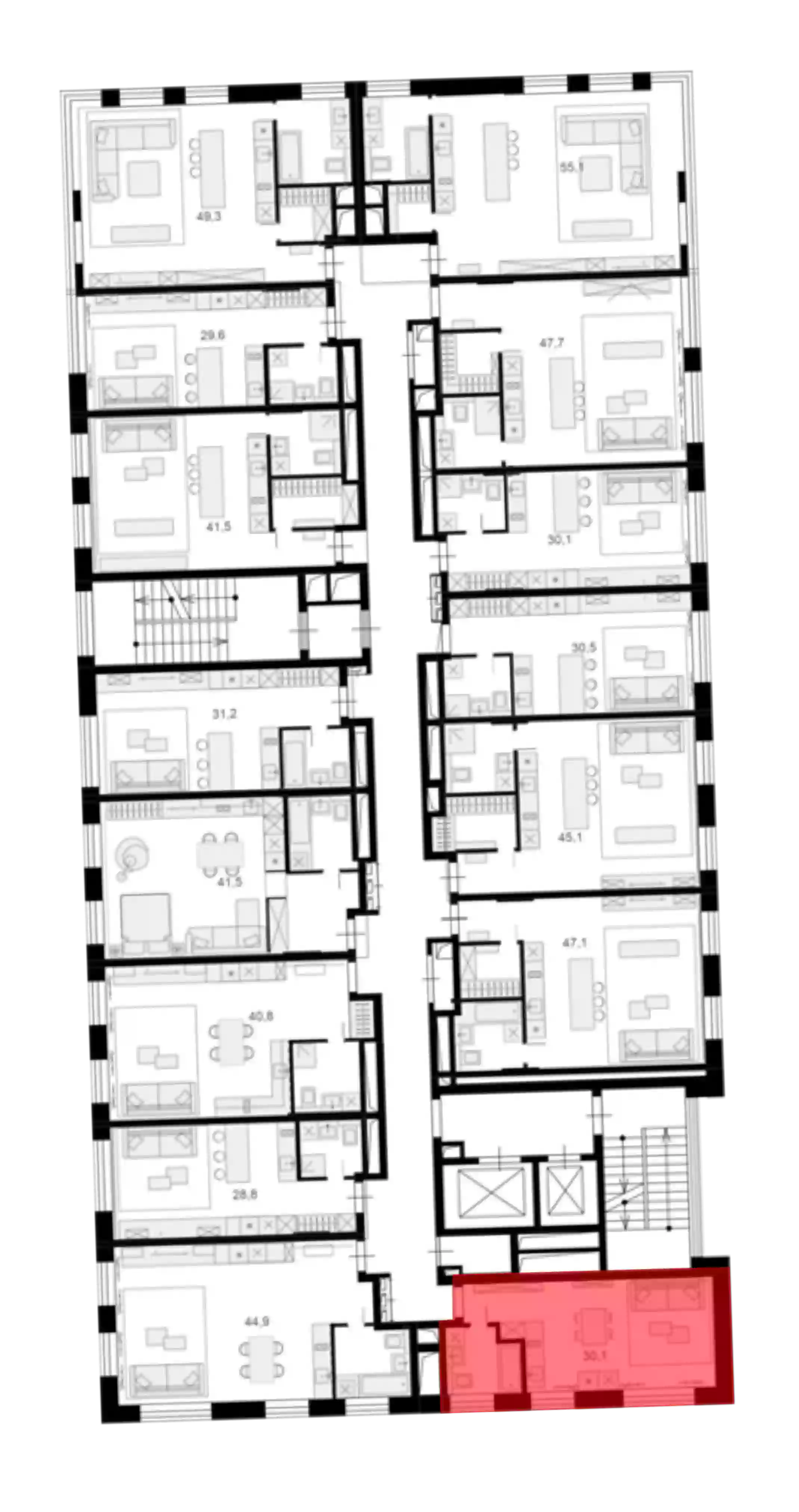 - Общая площадь 29.9 м²