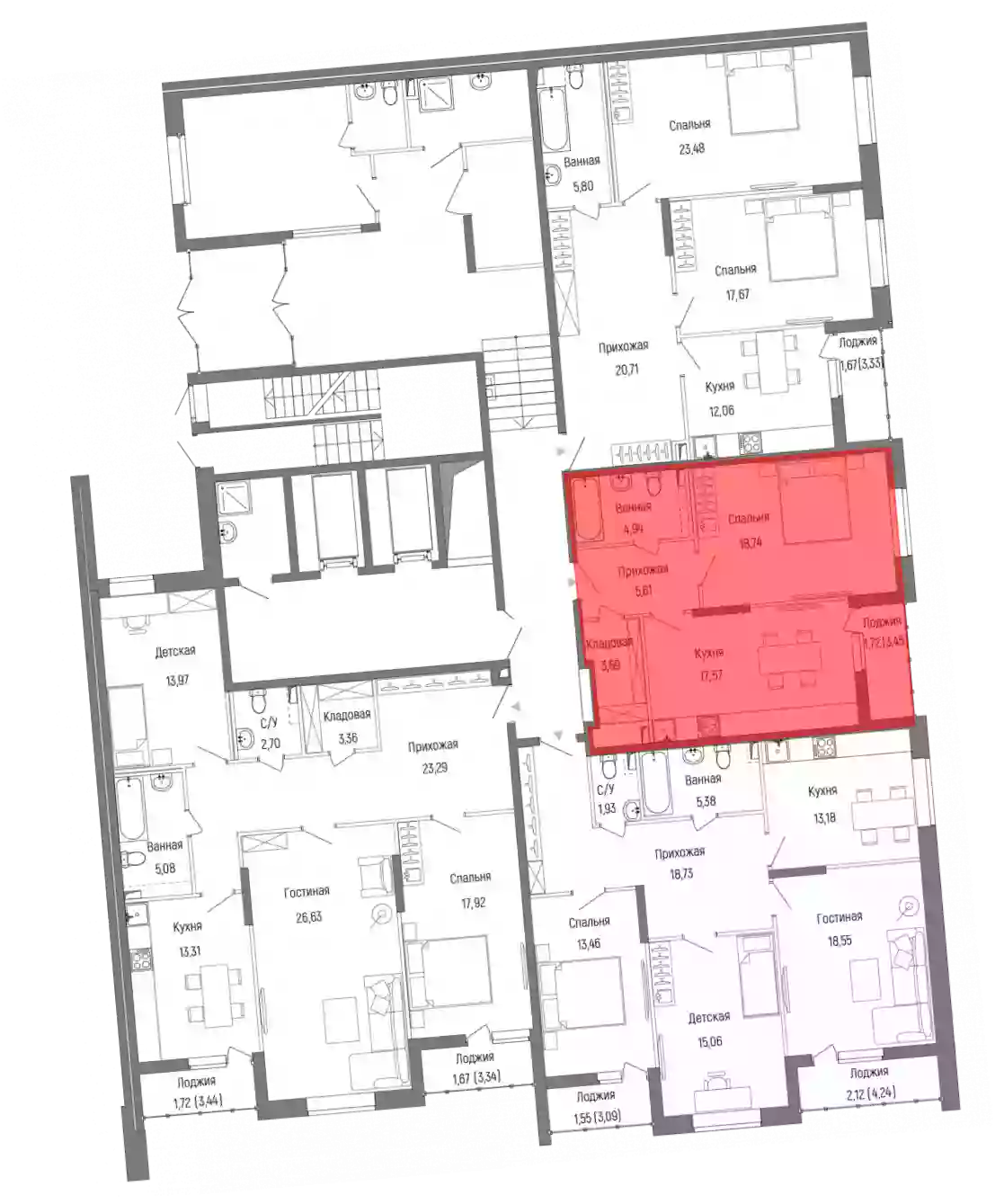 - Жилая площадь 18.74 м²
