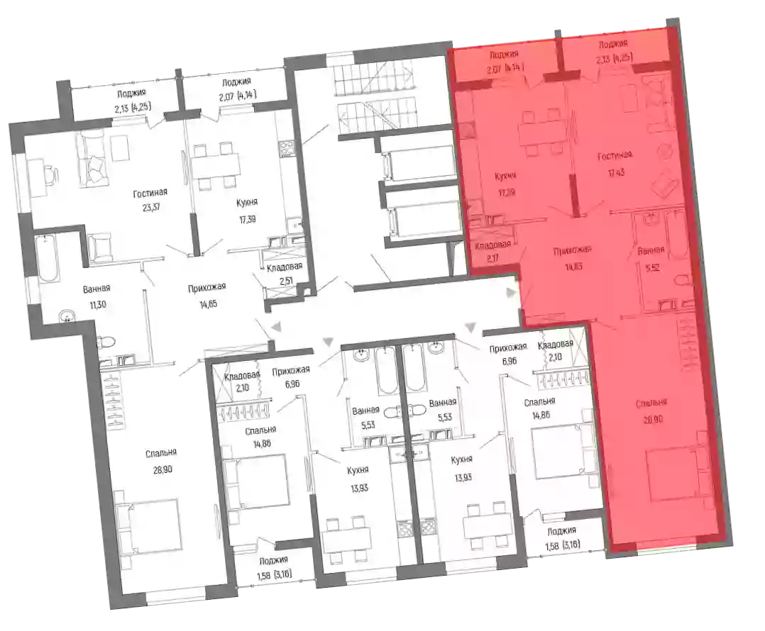 - Общая площадь 86.04 м²