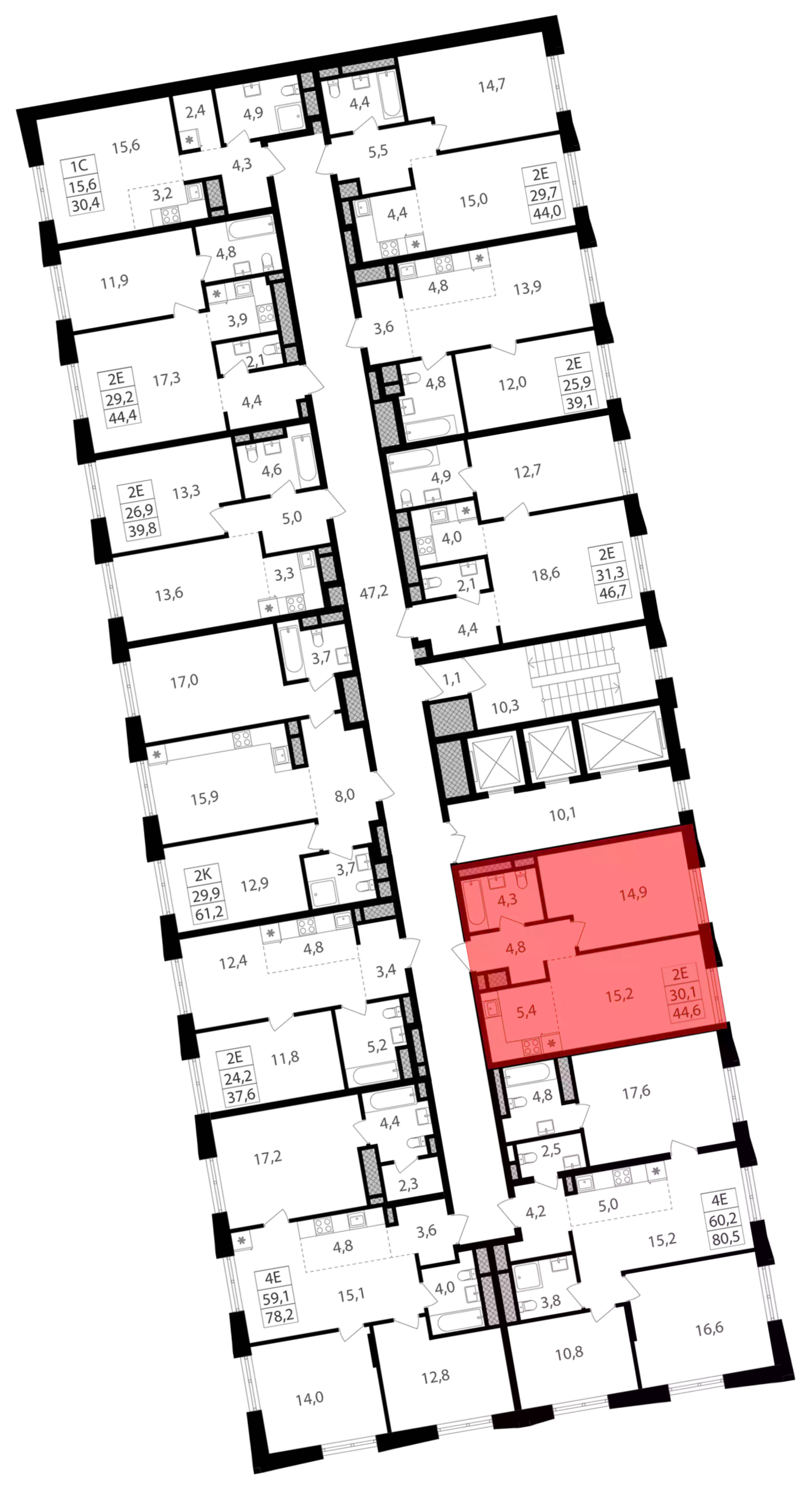 - Общая площадь 44.6 м²
