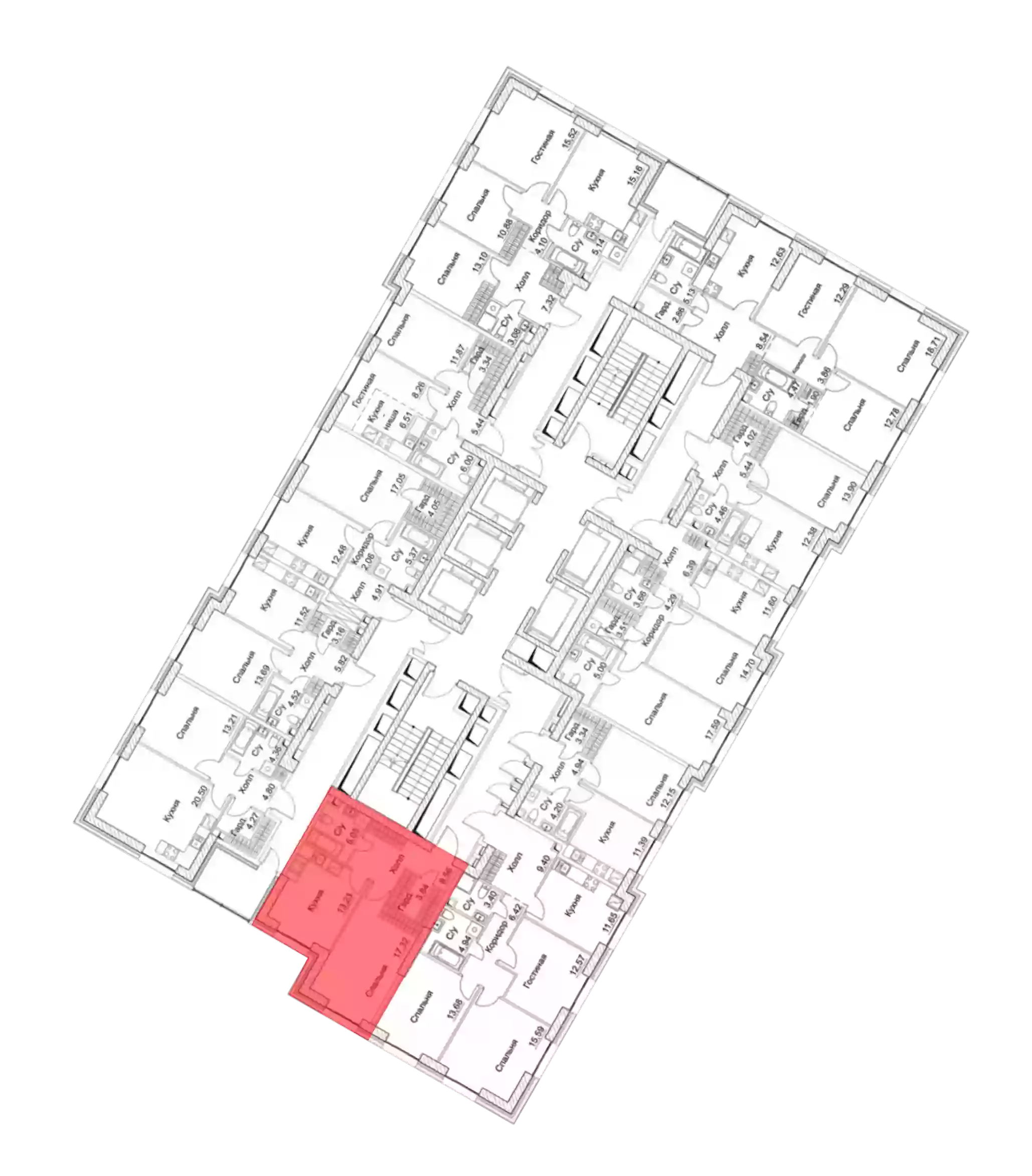 - Жилая площадь 17.17 м²