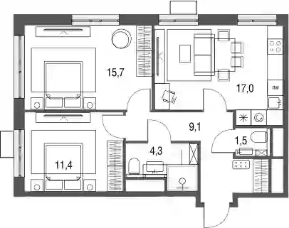 - Количество комнат 3
