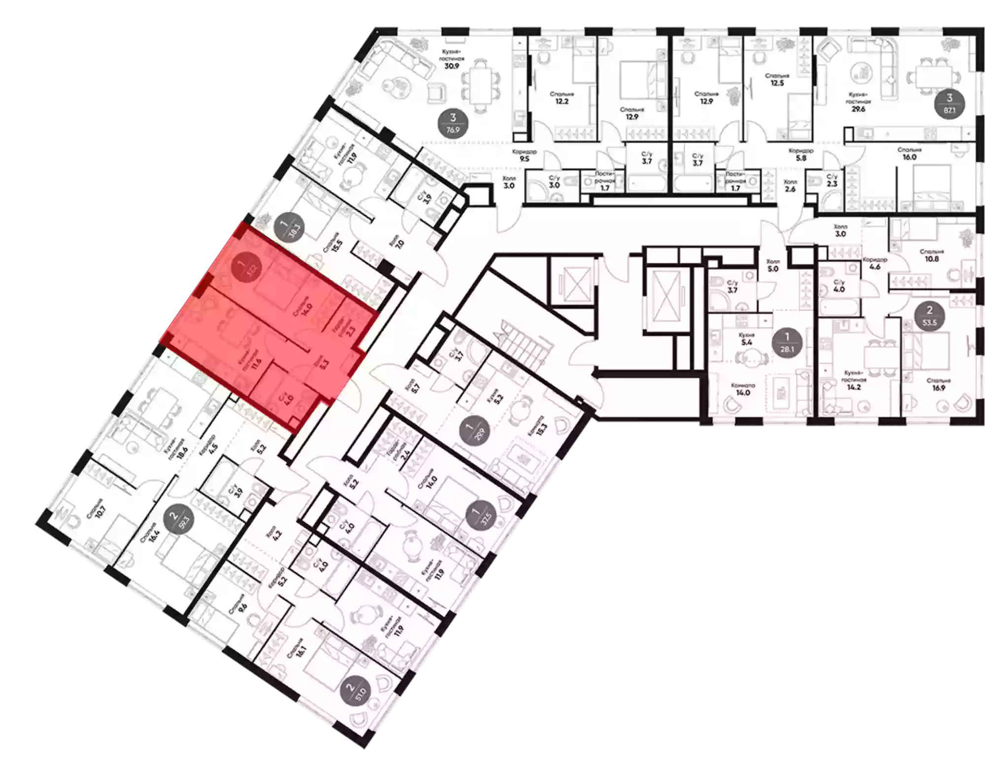 - Количество комнат 1