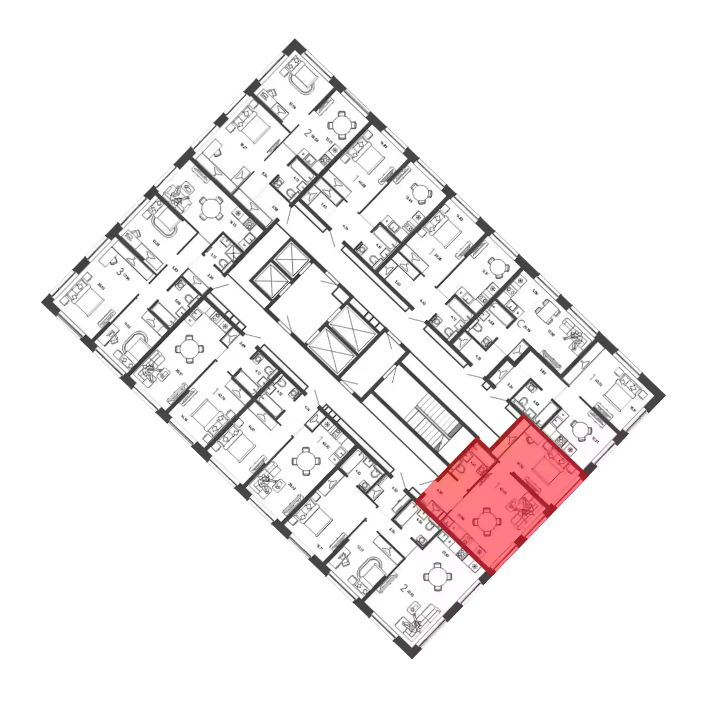 2-к.квартира, 45.43 м², 21 эт.
