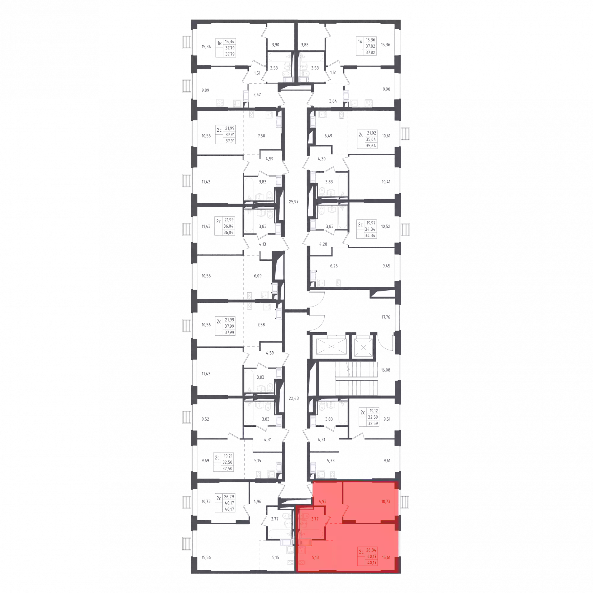 - Общая площадь 40.17 м²
