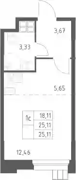 Студия, 25.11 м², 13 эт.