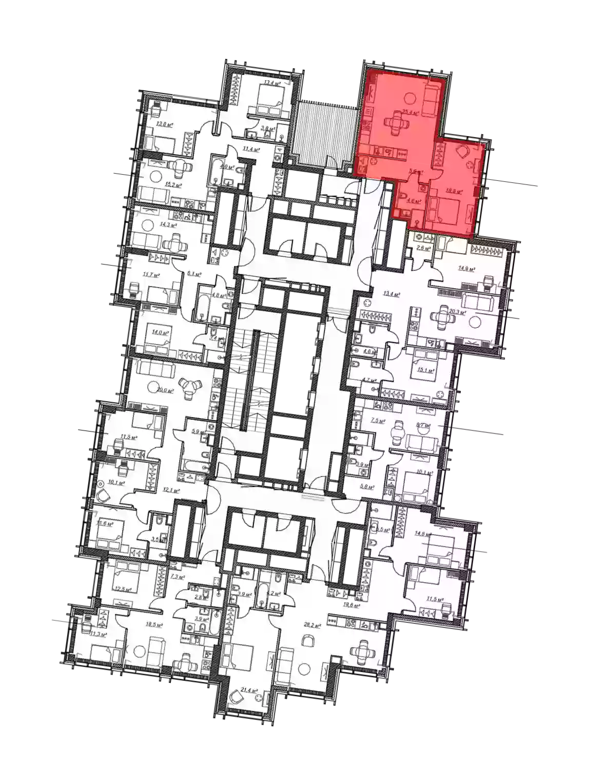 - Жилая площадь 18.8 м²