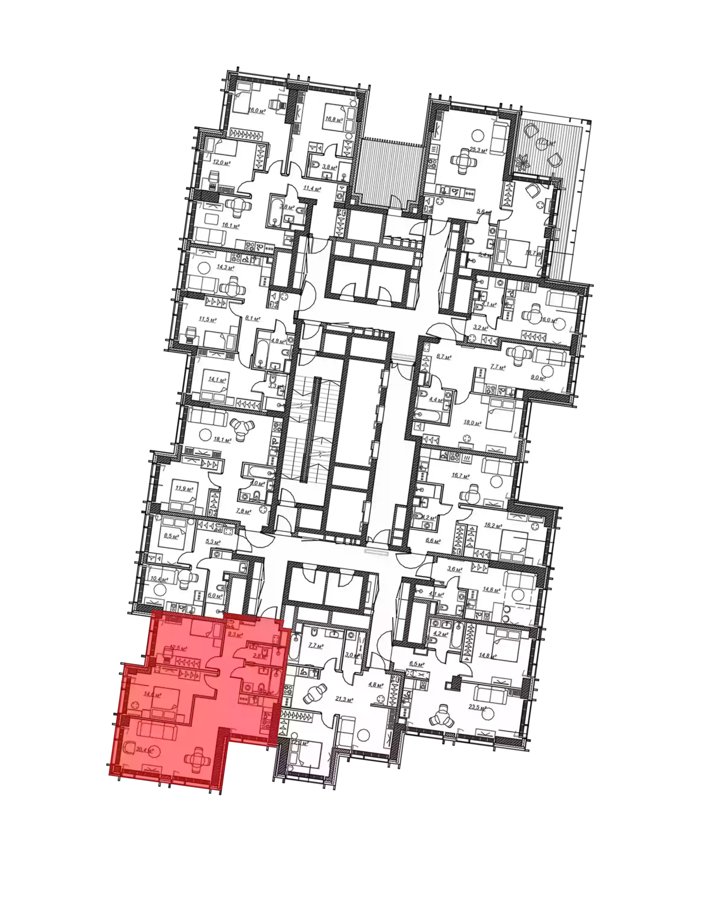 - Площадь кухни 30.4 м²
