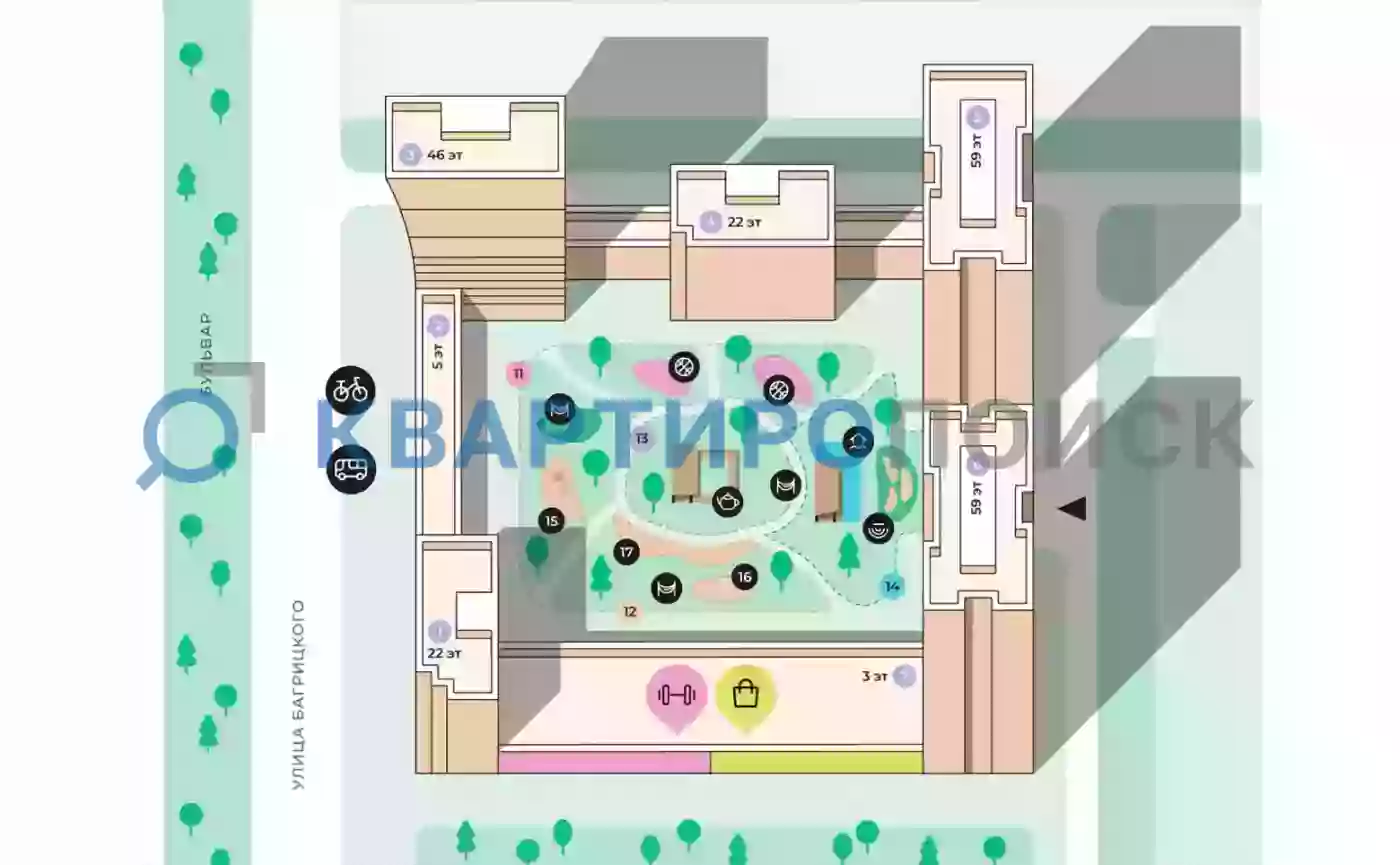 Для резидентов предусмотрен фиджитал фитнес-рум с кардио- и силовыми тренажерами, студией для стрейтчинга и аэробики, зоной для йоги в гамаках и балетным классом со станком. На территории оборудован сад-трансформер с мобильным озеленением и двухуровневым павильоном с открытой спортивной площадкой и лаунж-зоной, рядом размещена развивающая игровая площадка. Также доступен event-lounge для проведения мероприятий резидентов. Работают видеонаблюдение и система контроля доступа. Для автомобилей предусмотрен подземный паркинг с зарядными станциями для электромобилей.