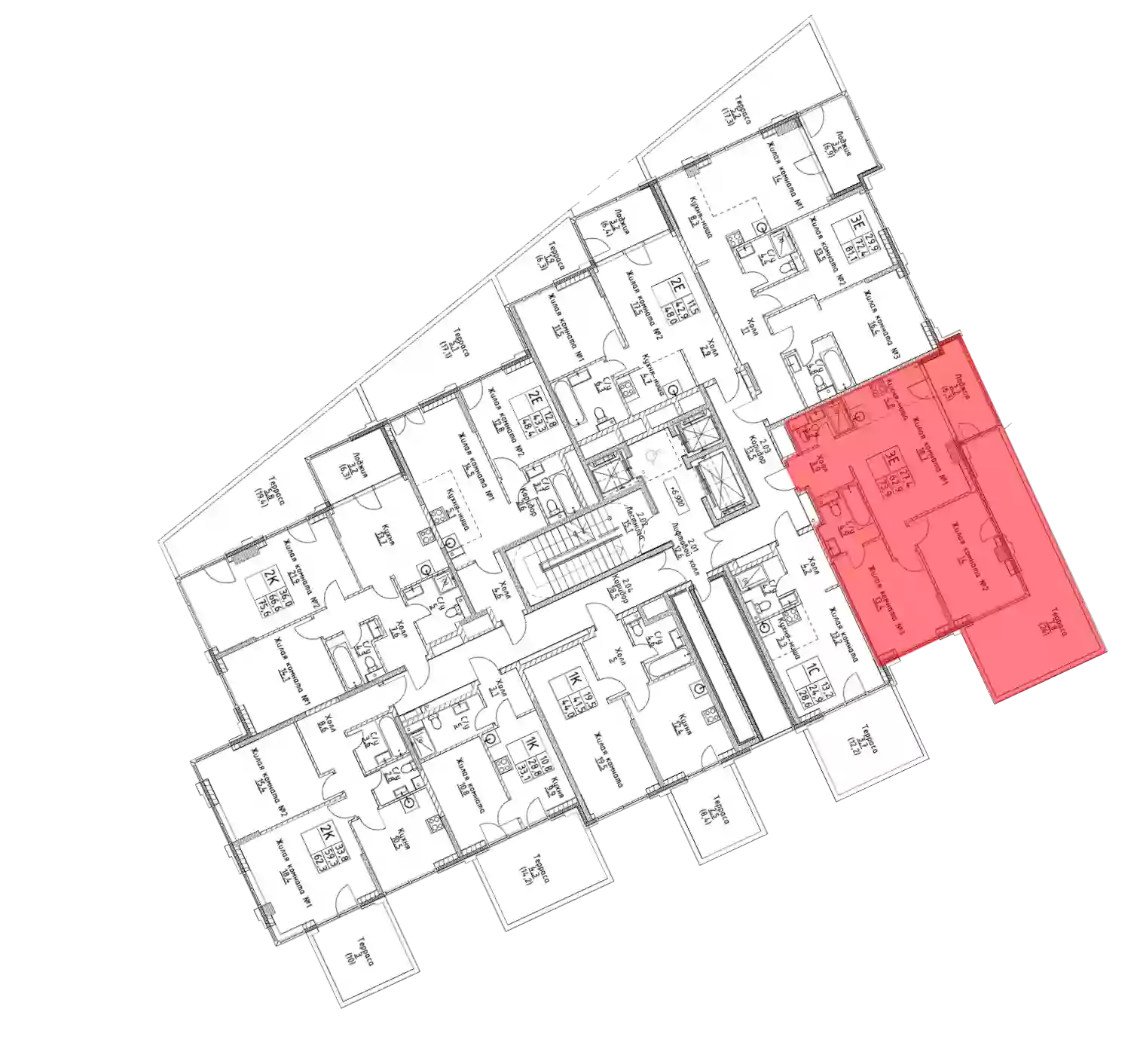 - Этажей в доме 19