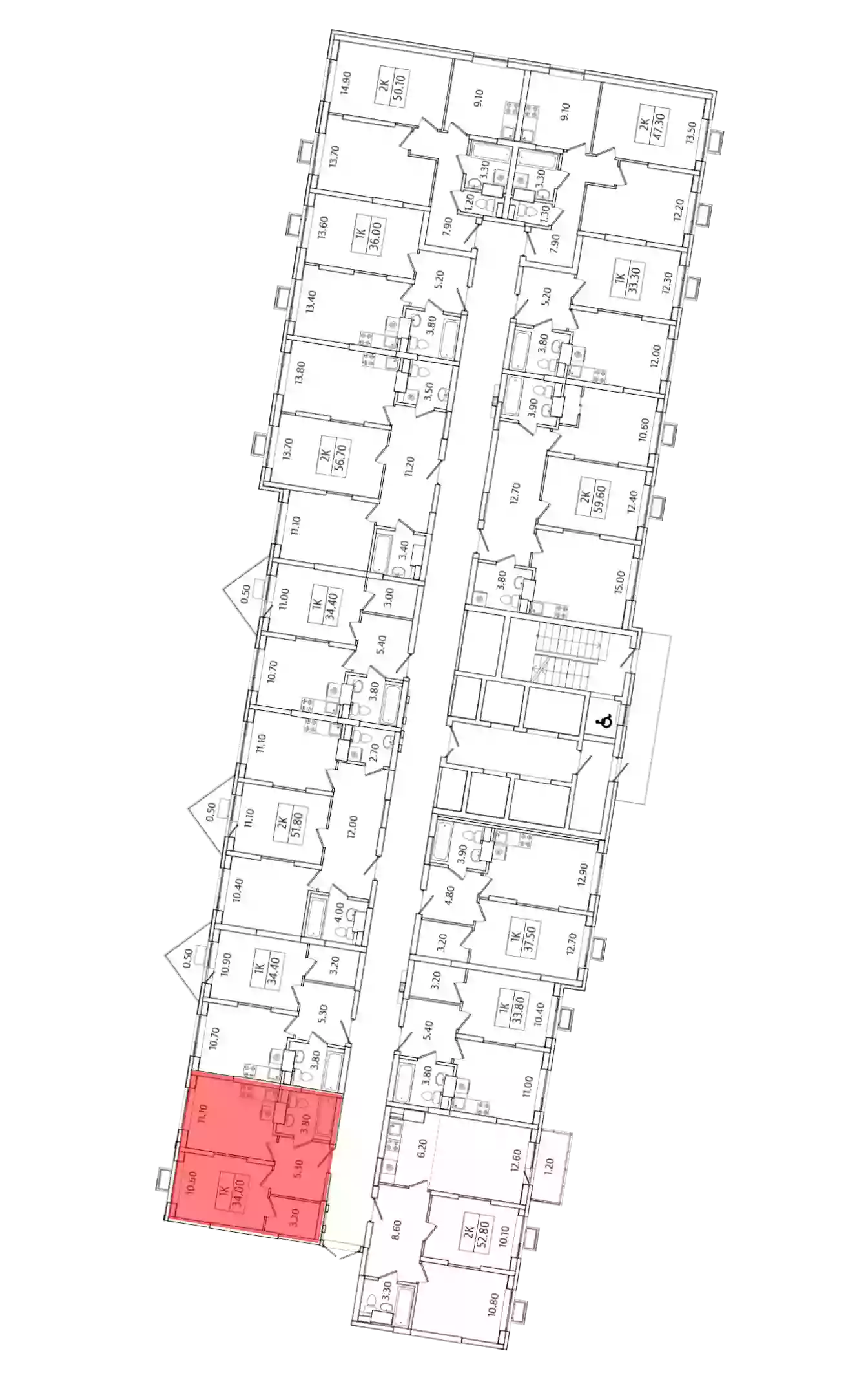 - Общая площадь 34.1 м²