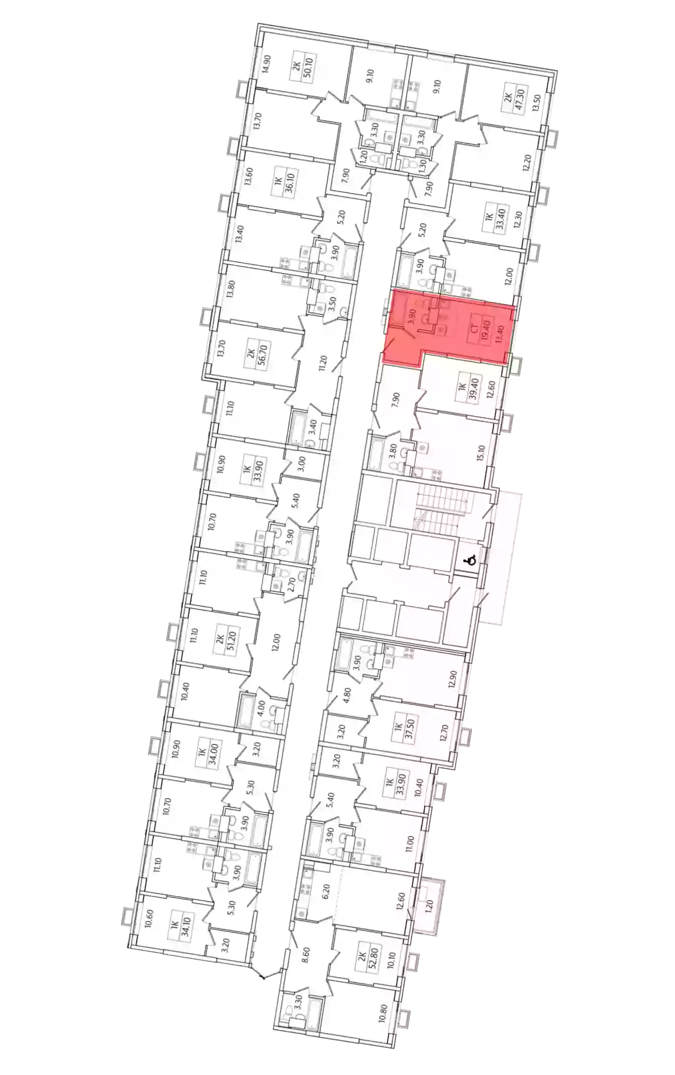 - Общая площадь 19.4 м²