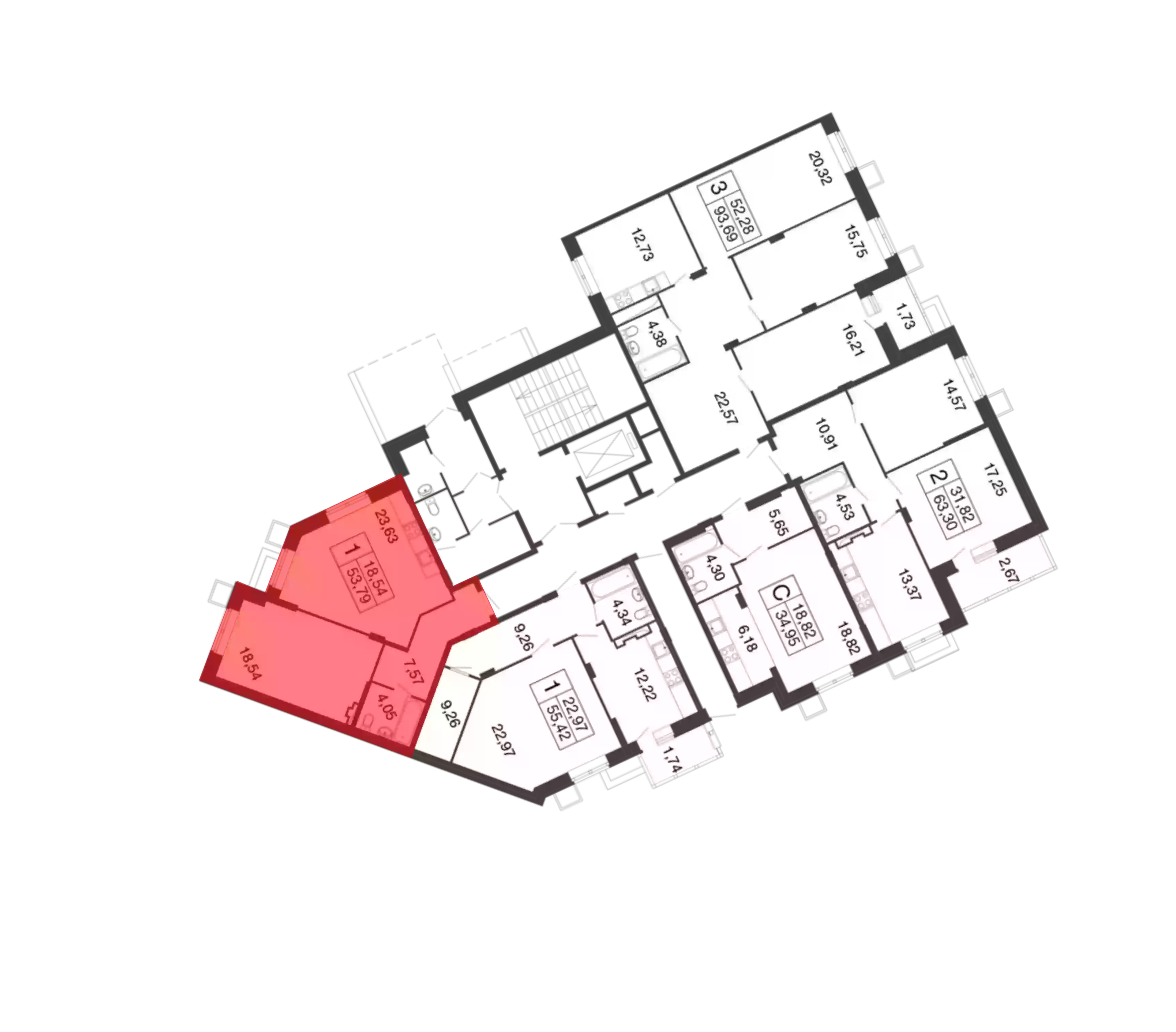 - Общая площадь 53.79 м²