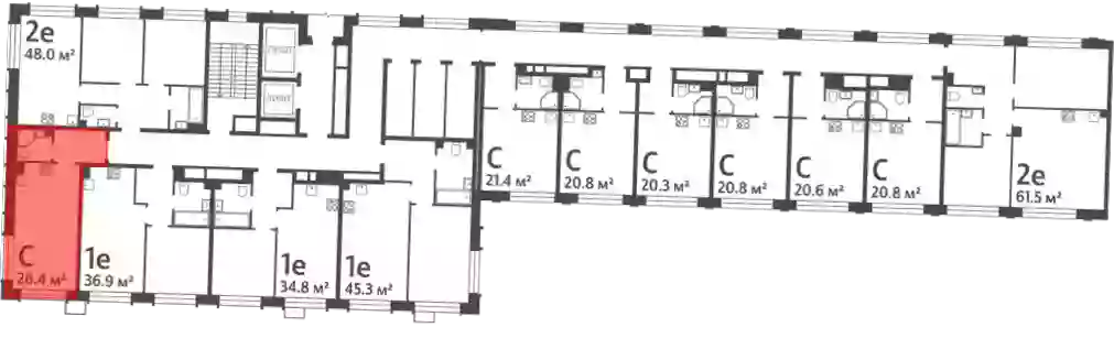- Общая площадь 26.4 м²