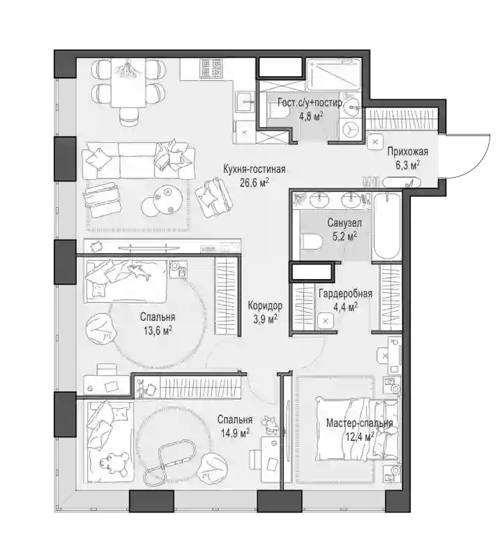 4-к.квартира, 92.2 м², 12 эт.