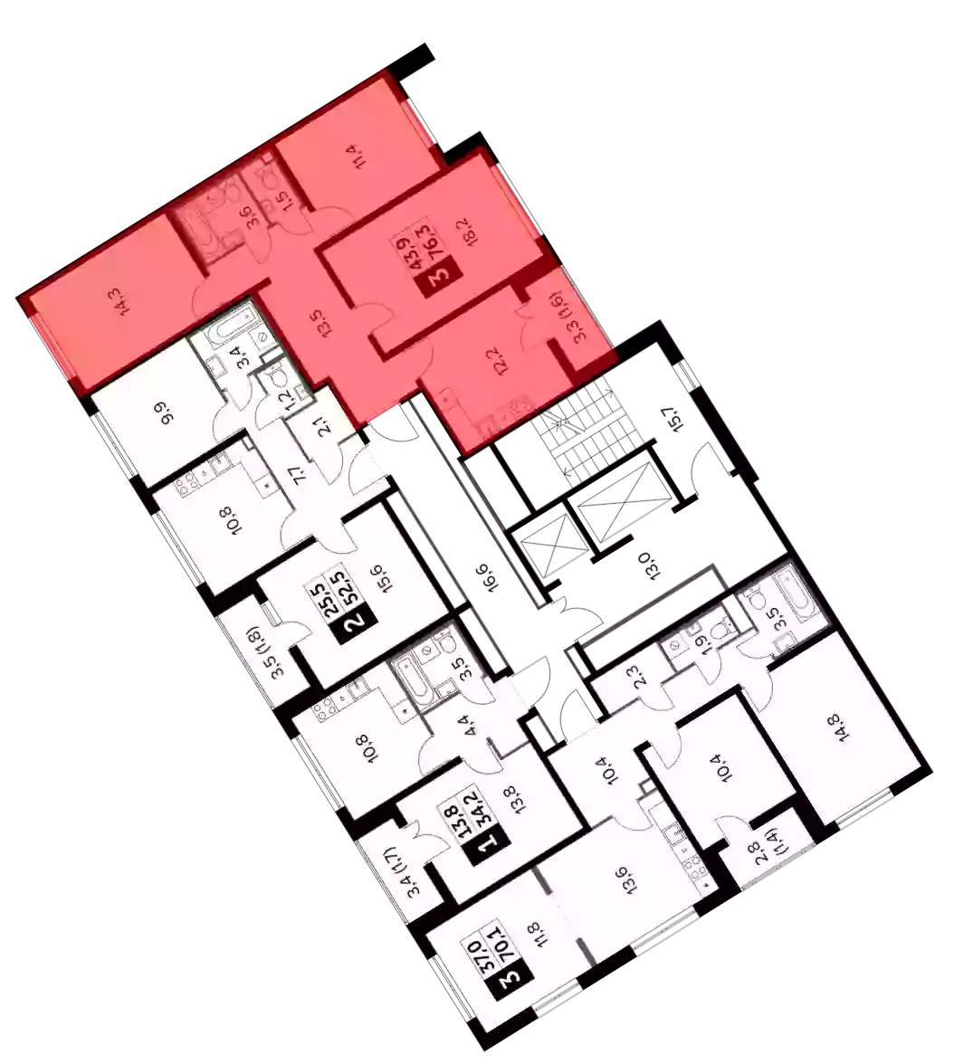- Жилая площадь 43.2 м²