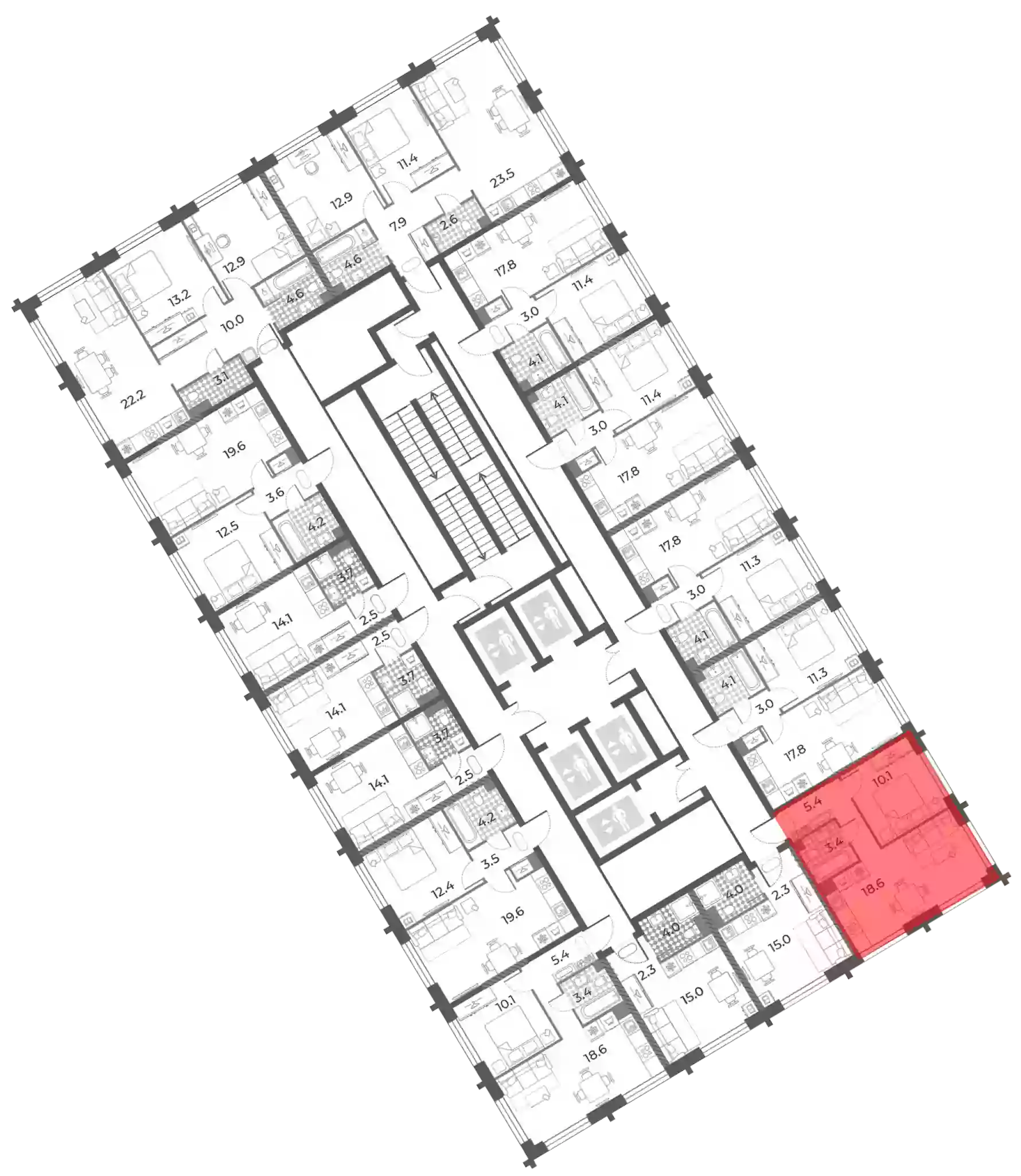- Этажей в доме 43