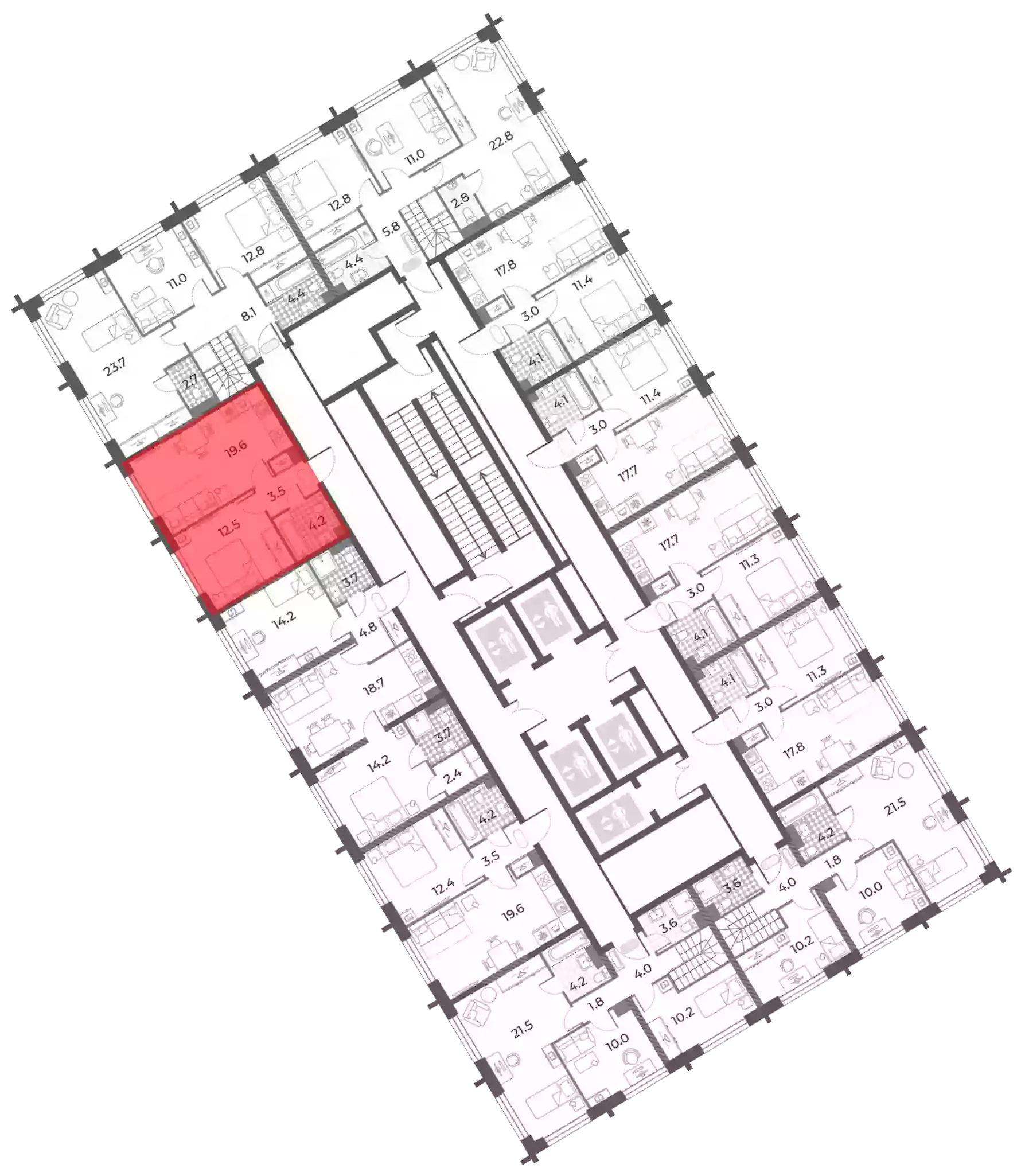 - Жилая площадь 12.5 м²