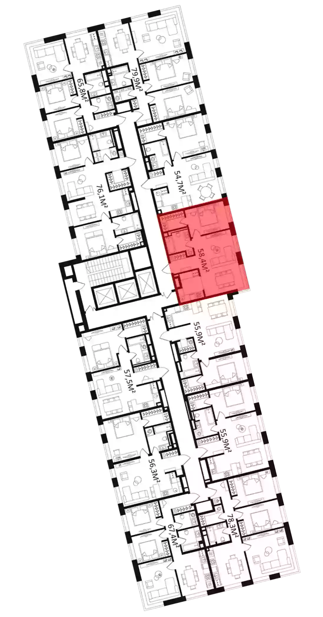 В жилом комплексе представлено 50 вариантов планировок квартир площадью от 28 до 110 кв. метров. Две трети из них оснащены балконом, лоджией или террасой. В проекте есть уникальные видовые квартиры с высокими потолками и панорамным обзором. Все квартиры сдаются с отделкой «white box».