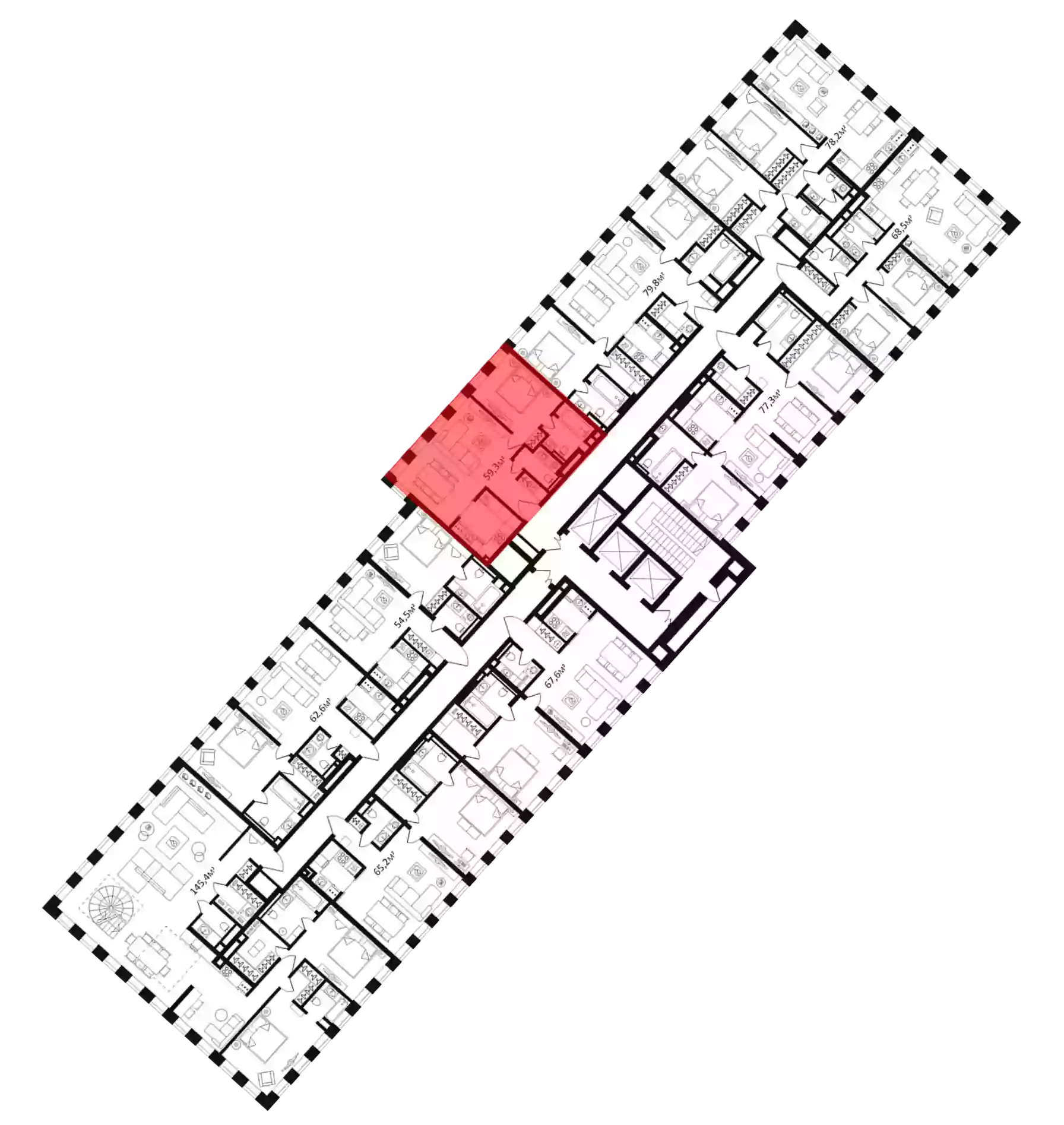 В жилом комплексе представлено 50 вариантов планировок квартир площадью от 28 до 110 кв. метров. Две трети из них оснащены балконом, лоджией или террасой. В проекте есть уникальные видовые квартиры с высокими потолками и панорамным обзором. Все квартиры сдаются с отделкой «white box».